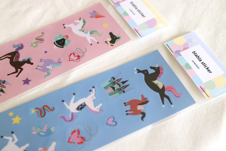오너먼트의 블라블라 시리즈 중 유니콘 스티커 입니다.