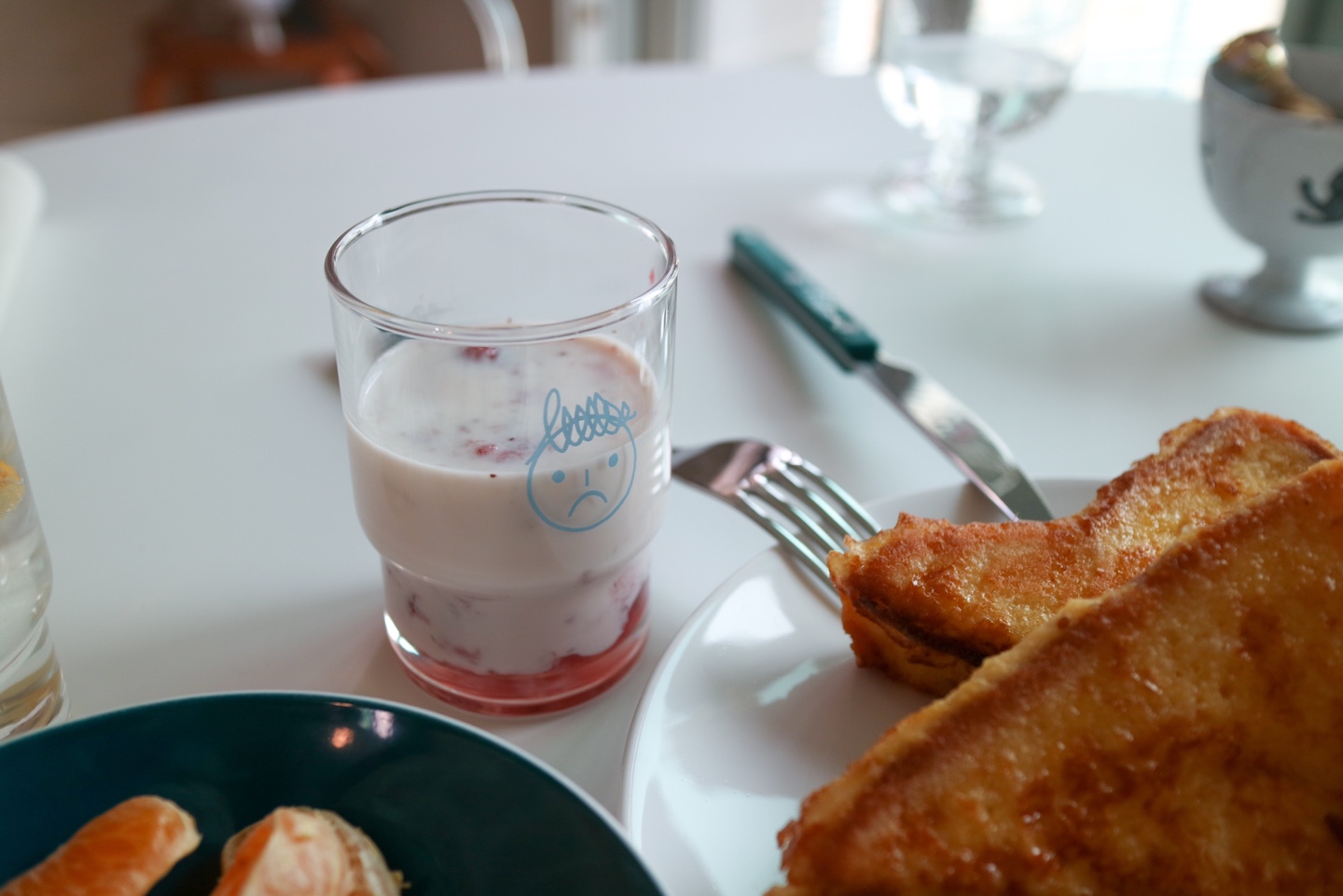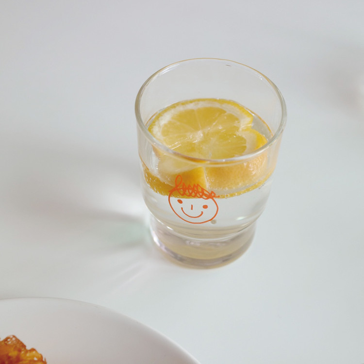 오너먼트의 시그니쳐 스마일을 작은 유리컵에 담았습니다.
