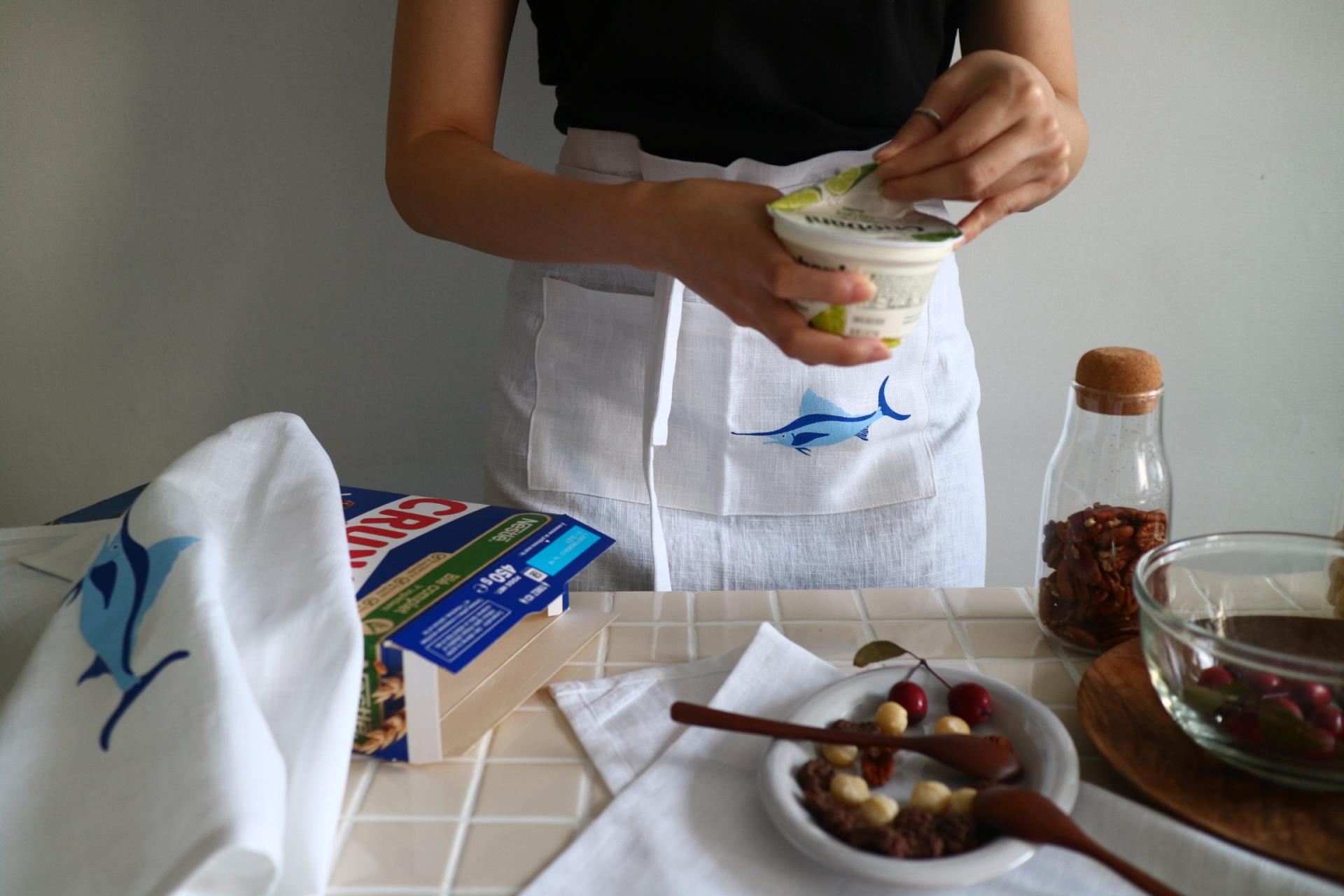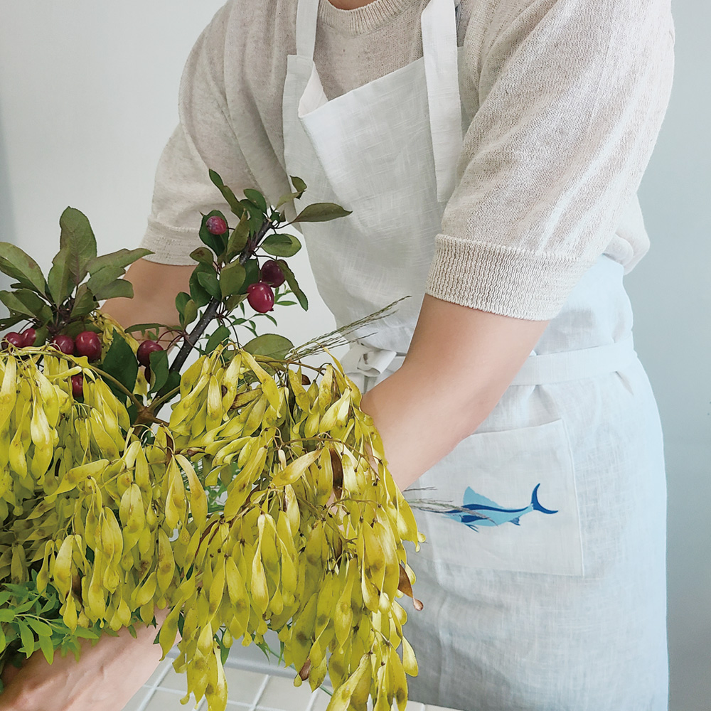 일러스트레이터 임세연작가의 귀여운 'blue fish' 가 담긴 앞치마입니다.